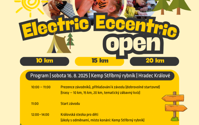 Jeden pěkný den v kempu Stříbrný rybník! Připravený pro vás. Electric Eccentric openTermín: 16. 8. 2025, Místo konání: Kemp Stříbrný rybníkV rámci 10. ročníku našich výprav Electric Eccentric jsme pro vás připravili veřejnou akci Electric